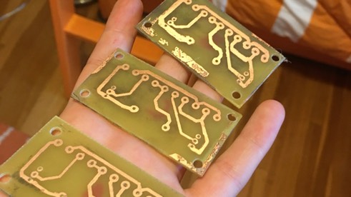 The first method I learned was acid-resist PCBs, which is how the two above were made.