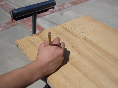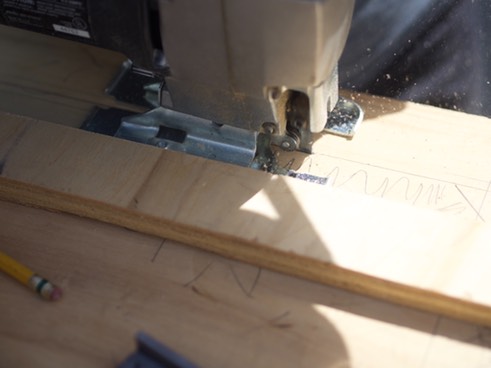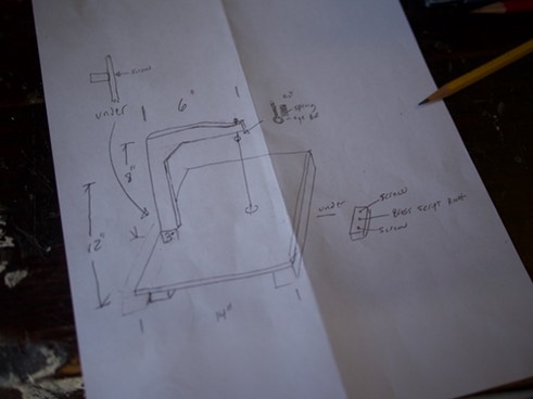 First, I measured out the distances I would need to cut, estimated some tolerances, and layed out the arm on some scrap plywood (everything here was a little loose).