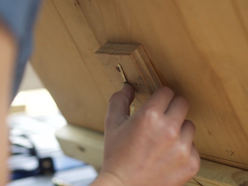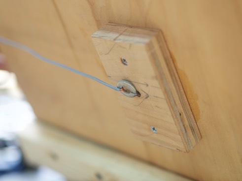 I drilled a hole in the bolt and a hole through the plywood so that the bolt could slide through it.