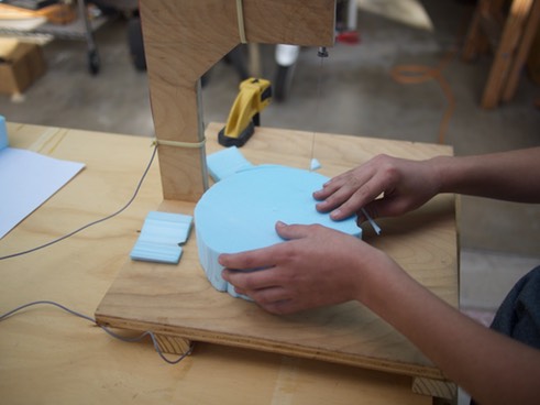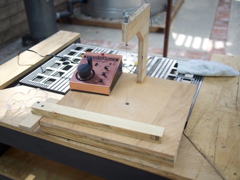 I made a variant of this foam cutter with two bolts (for height adjustment) and a tensioning block in order to make a horizontal wire cutter to plane blocks.